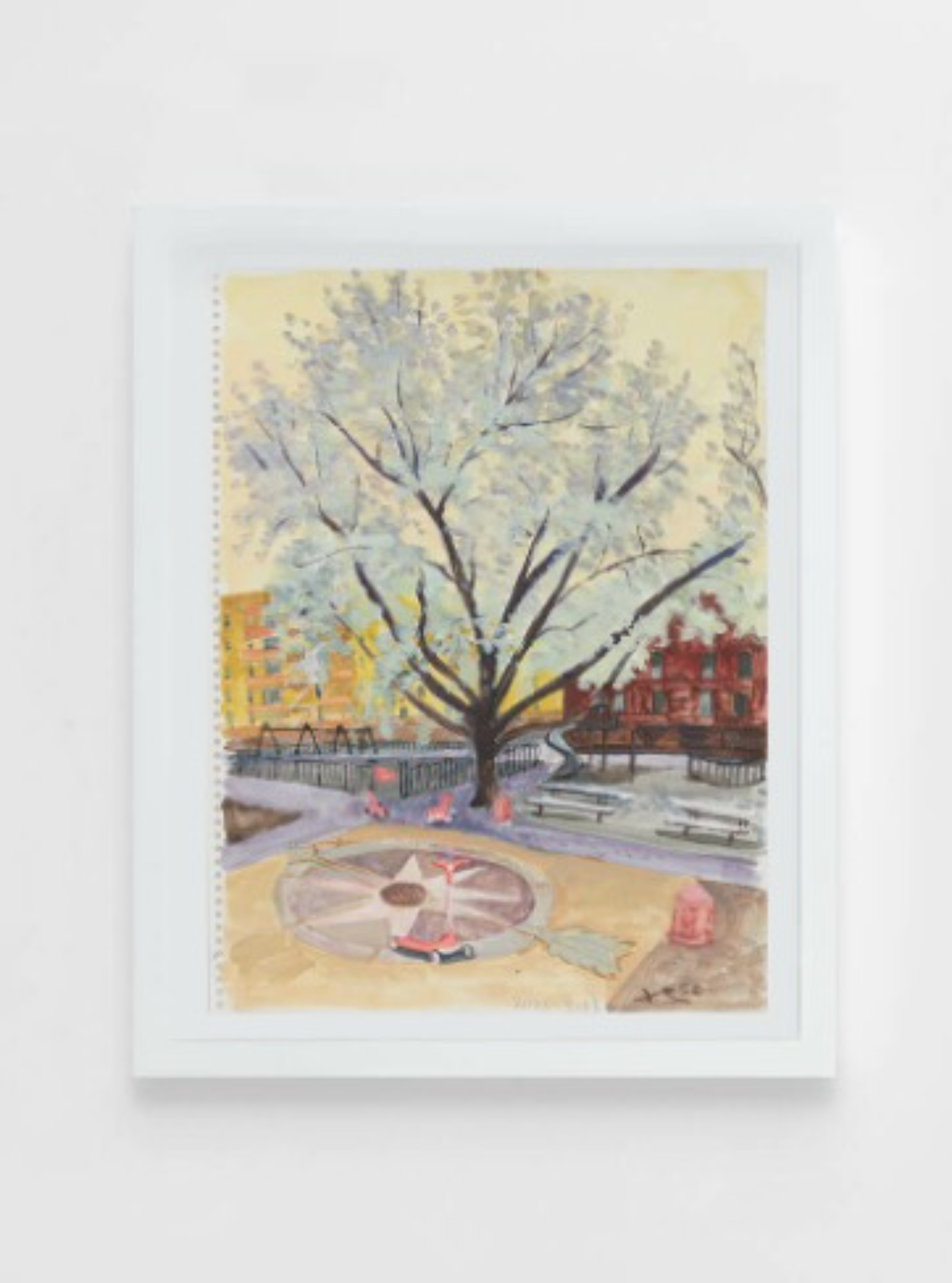 Liu Xiaodong’s Spring in New York is a quietly powerful series of watercolor paintings made during the first wave of the COVID-19 pandemic, when the Chinese artist found himself unexpectedly stranded in New York. Liu is known for his observational realism and his sensitive portrayal of humanity caught in moments of global issues such as population displacement, environmental crisis, and economic upheaval. In this series, he turns his attention to the surreal stillness of pandemic-era New York, capturing a city emptied of its usual energy and movement, and later, its reawakening in the form of protest. Created between March and June 2020, the paintings chronologically reflect Liu’s daily walks through the West Village and beyond, where he documented what he saw with his usual mix of directness and subtle emotion. In April, there are brought blossoming trees in a closed playground (Children’s Park 2020.4.14); in early May, he captured a socially distanced game of chess at Astor Place (East Village 2020.5.6). In late May, the energy shifted as Black Lives Matter protesters took to the streets (At My Doorstop 2020.6.1). The exhibition of Spring in New York was itself shaped by the conditions of the pandemic; it was launched digitally by Lisson Gallery in June 2020, at a time when galleries remained closed.