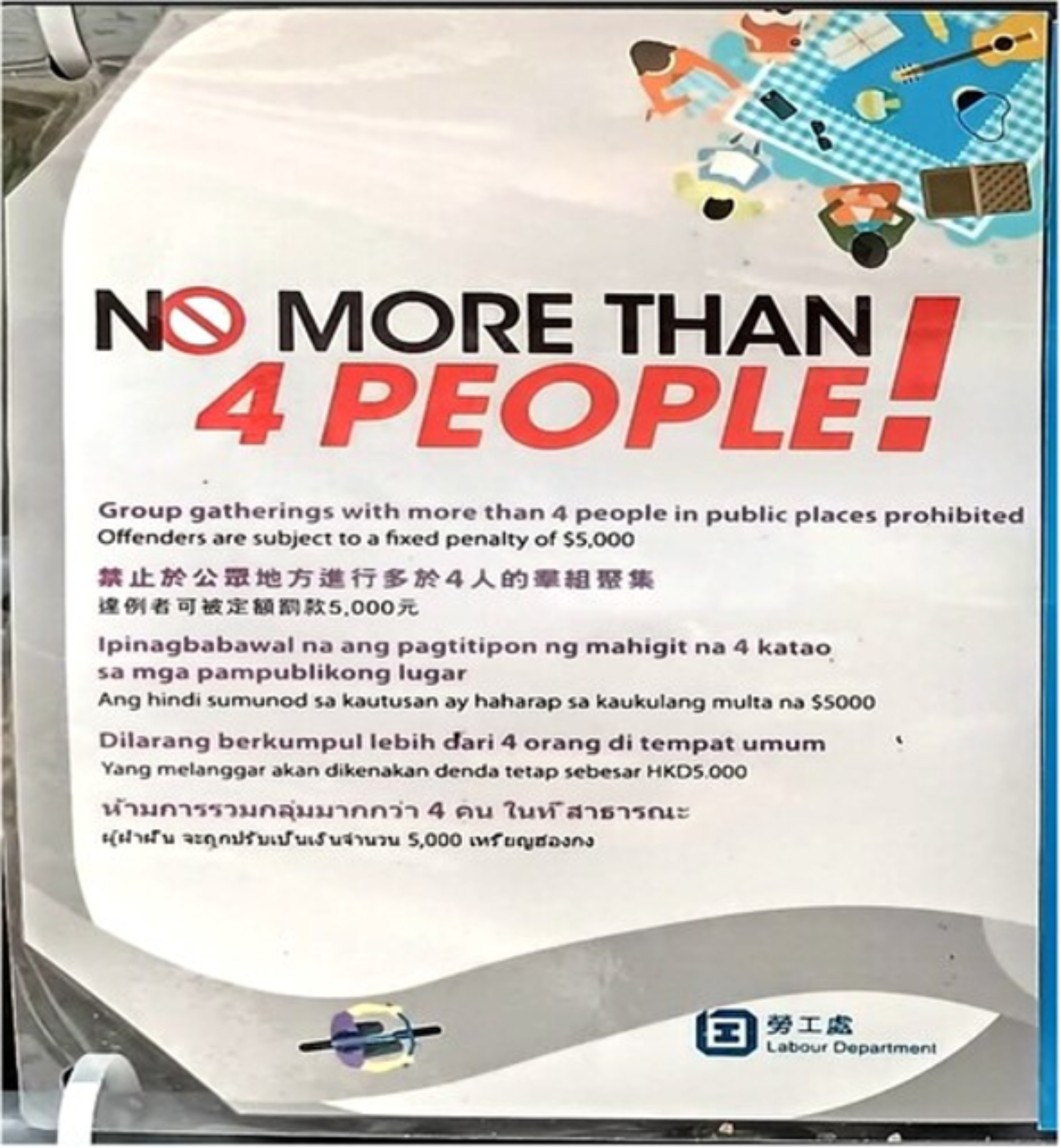 Through his data collection, Gu found that Indonesian, Tagalog, Hindi, Nepali, and Urdu were highly visible on multiple signs and posters on COVID-19, but languages that were more commonly used worldwide, such as French, Spanish, and Arabic, were rare. He attributes this finding partly to the idea of “multilingual commanding urgency” in the pandemic context, which means that officials created signs in certain languages in hopes that these language groups could be better informed about COVID-19 regulations. An interesting finding was that translations for motivational messages about fighting the pandemic and information about government welfare were also common, revealing an additional positive function of translation in facilitating the integration of multicultural communities into Hong Kong’s collective pandemic control effort. Another explanation is that the relative prevalence of Southeast Asian or South Asians when compared to Europeans or Arabs in Hong Kong. Gu observes that official signs featuring multiple languages in Hong Kong were more functional and accurate than those from other countries due to collaboration with members of the respective language groups. Private businesses and individuals also voluntarily created their own multilingual signs in compliance with government infection control measures, but these were often prone to grammatical mistakes.