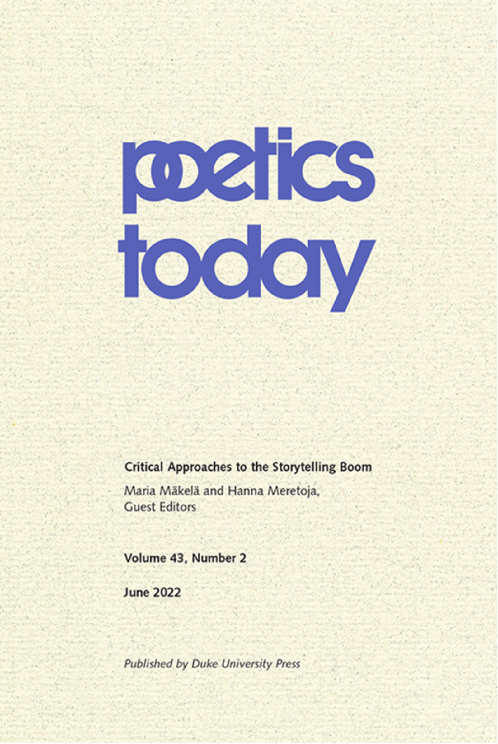 Cover image of Poetics Today, vol. 43, no. 2, June 2022.Citation: Giaxoglou, Korina. “Mobilizing Stories of Illness in Digital Contexts: A Critical Approach to Narrative, Voice, and Visibility.” Poetics Today, vol. 43, no. 2, 1 Jun. 2022, pp. 287–308, https://doi-org.ezproxy.lib.torontomu.ca/10.1215/03335372-9642623. NON-FICTION, SCHOLARLY ARTICLE, 2020 | UK. ll