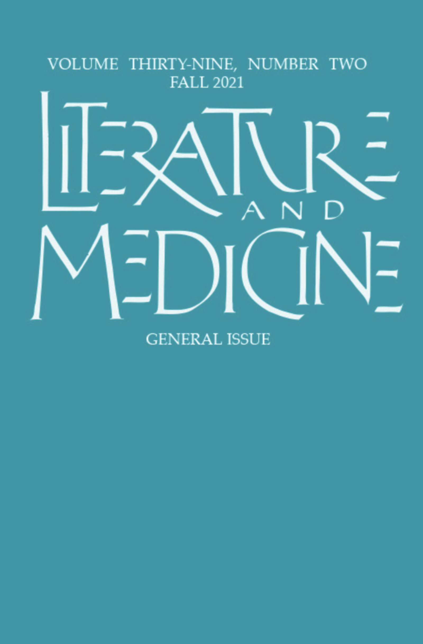 Cover image of Literature and Medicine, vol. 39, no. 2, 2021.